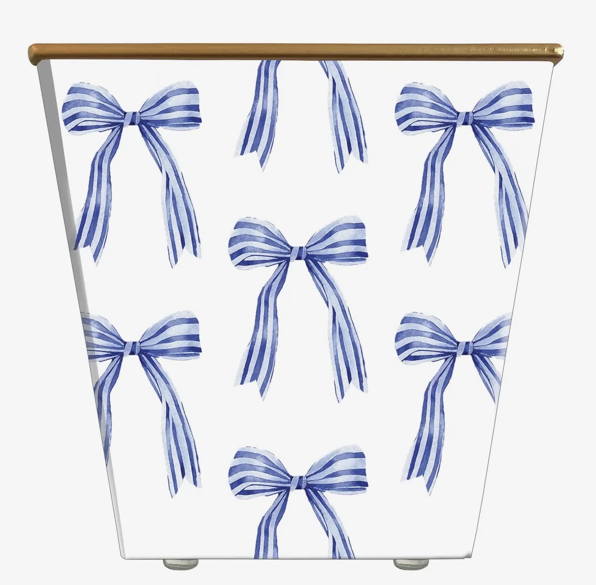 En elegant blomsterpotte med vakre delikate sløyfer i nydelig blåfarge. Den klassiske kombinasjonen av blå sløyfer på hvit bunn gir et friskt og sommerlig uttrykk som passer perfekt i både stue, kjøkken eller på terrasse.