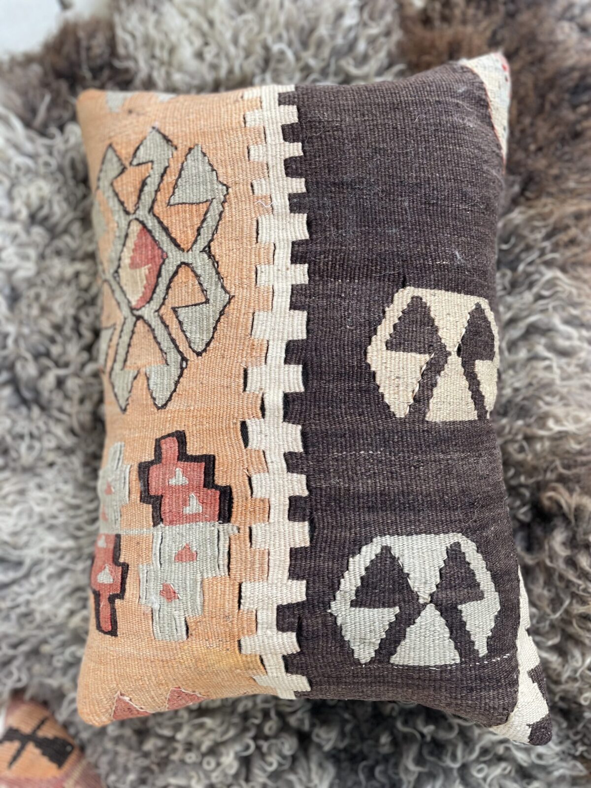 Ekte kelimpute 35×50 cm med ensfarget mosegrønn bakside med glidelås.