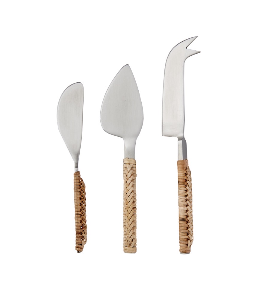 Håndlagde skaft på ostekniver i natur bambus og rustfritt stål.