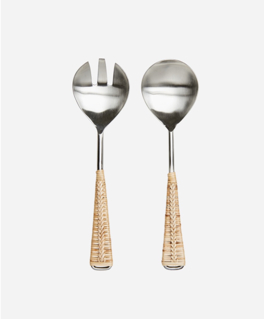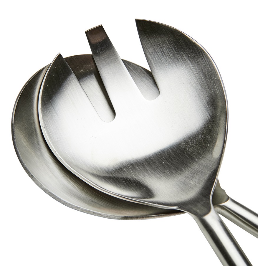 Håndlagd salatbestikk i natur/bambus og rustfritt stål.