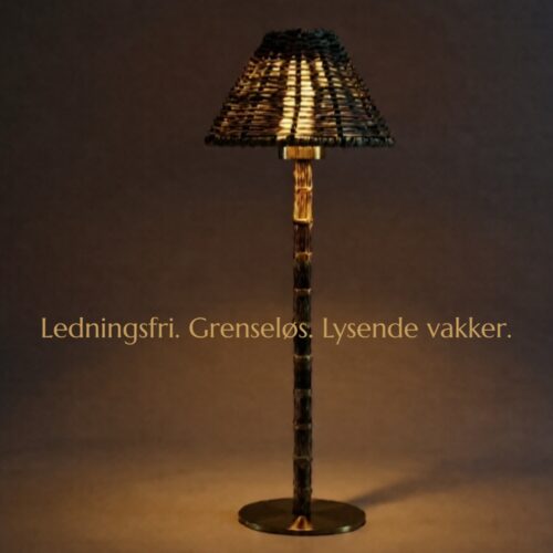 Opplev friheten med en lampe som kombinerer naturens varme med moderne teknologi. Den flettede kurvskjermen sprer lyset på en myk og stemningsfull måte, mens lampefoten i bambus gir et naturlig, tidløst preg som passer like godt ute som inne.